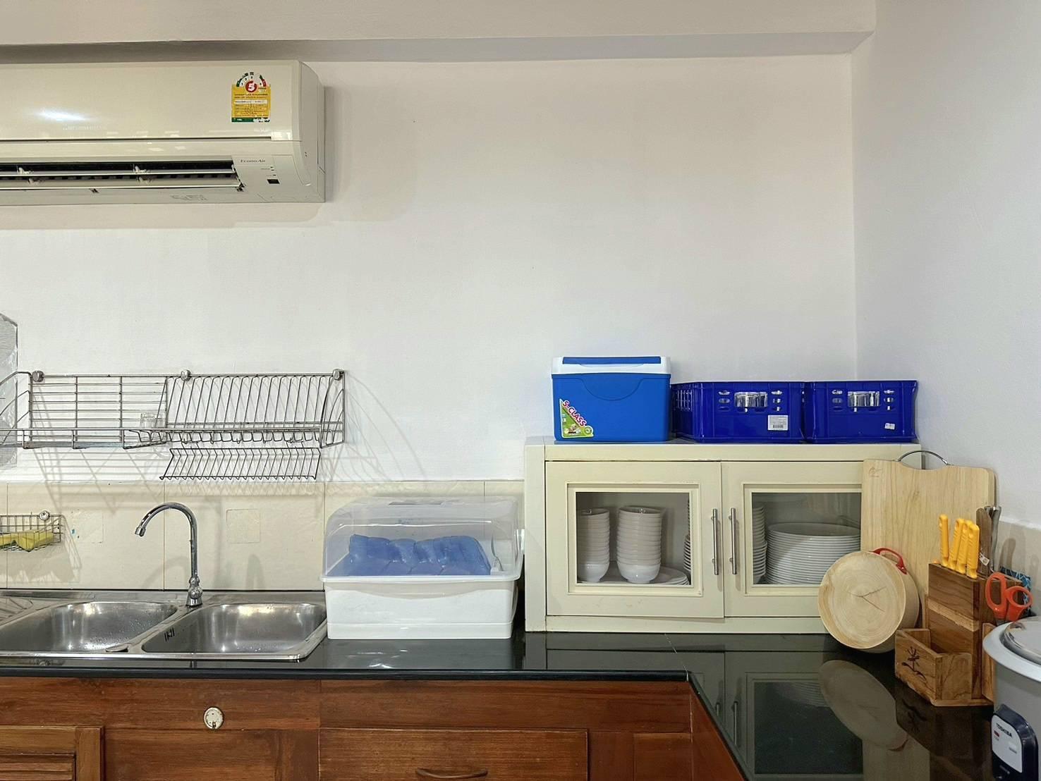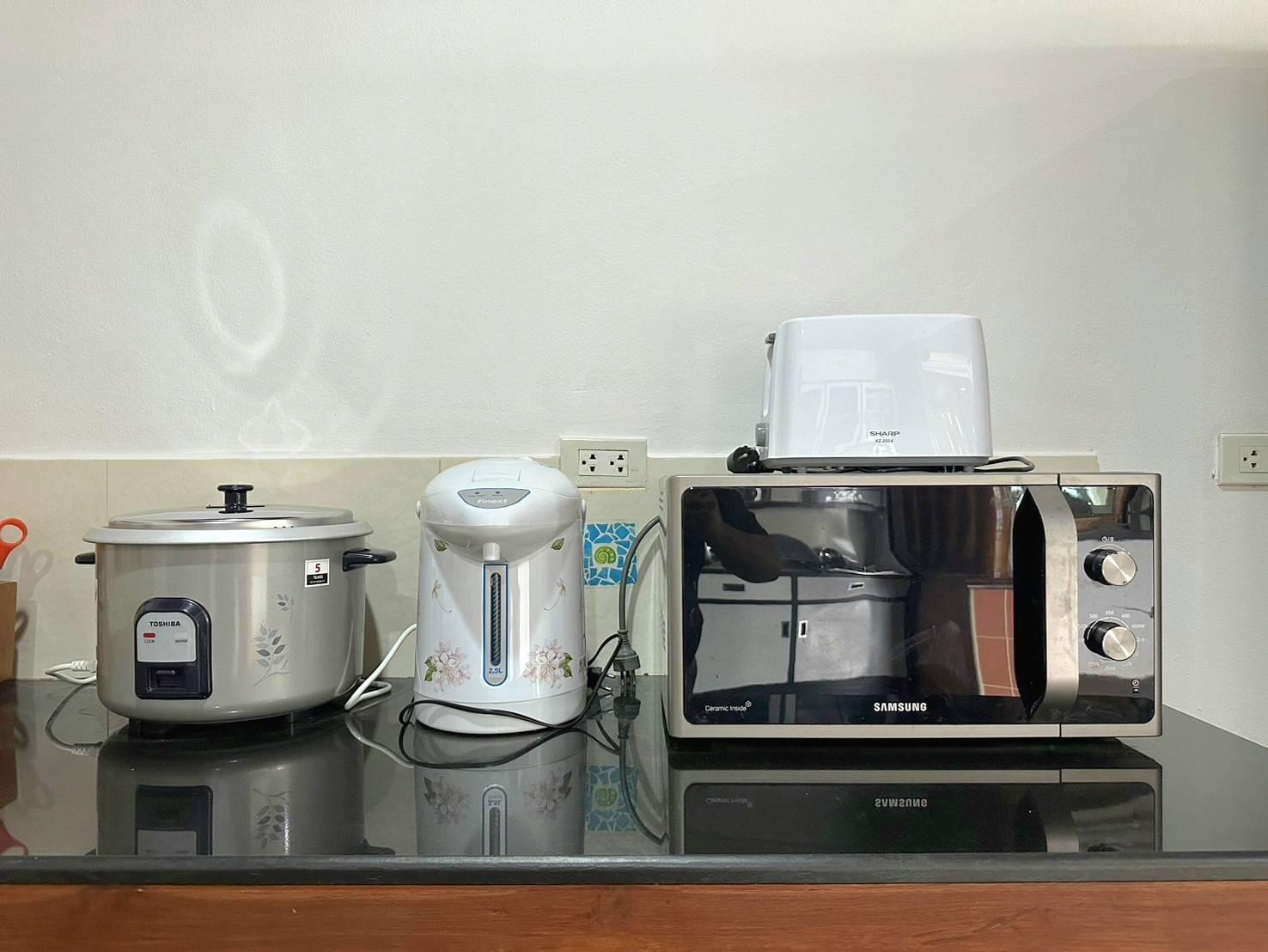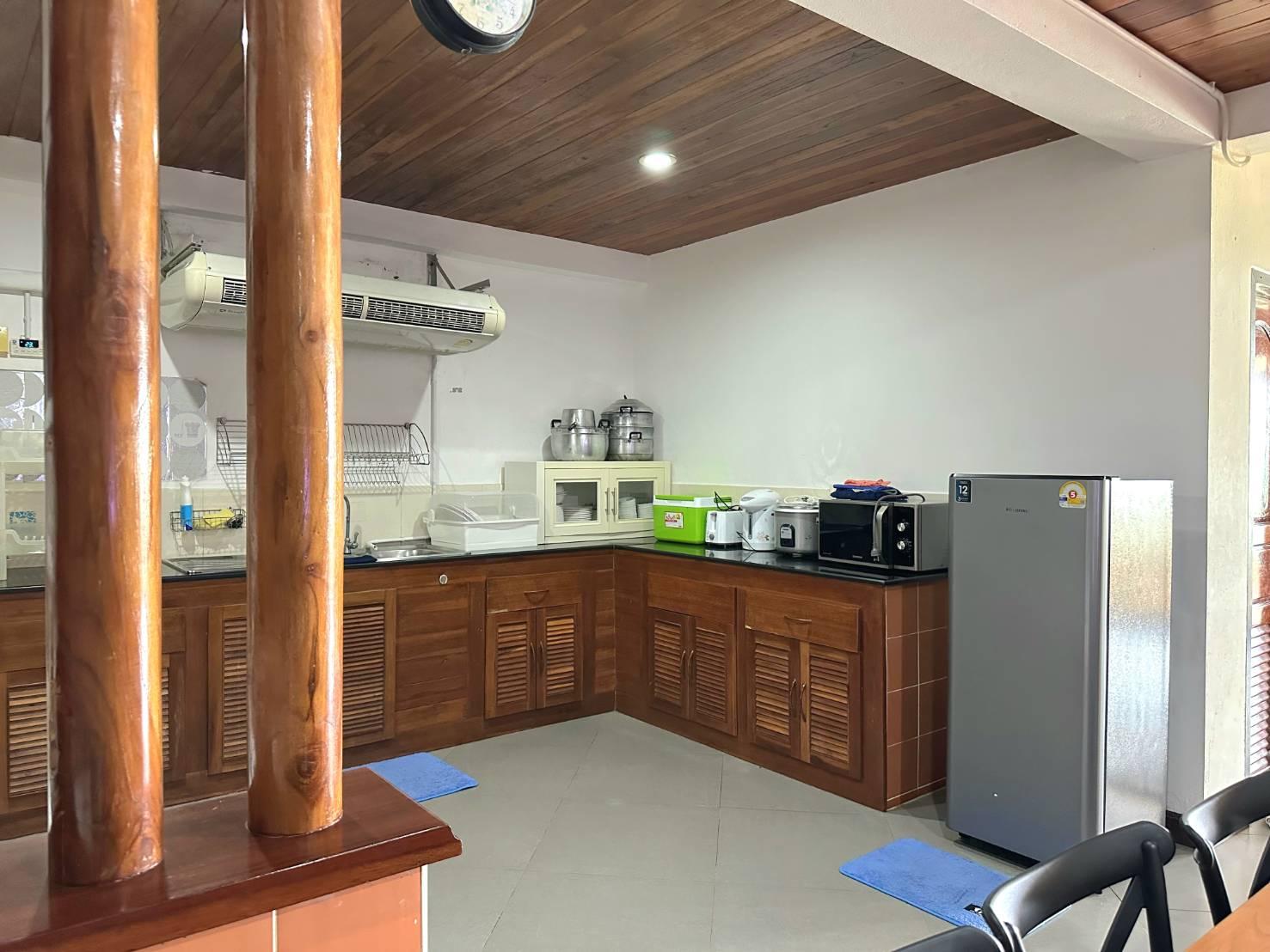 👨🍳 อุปกรณ์ครัวครบครัน ตู้เย็น,หม้อหุงข้าว,เตาแก๊ส,หม้อ,กระทะ,จาน,ชาม,ช้อน,ส้อม,แก้วน้ำ,กระติกน้ำแข็ง